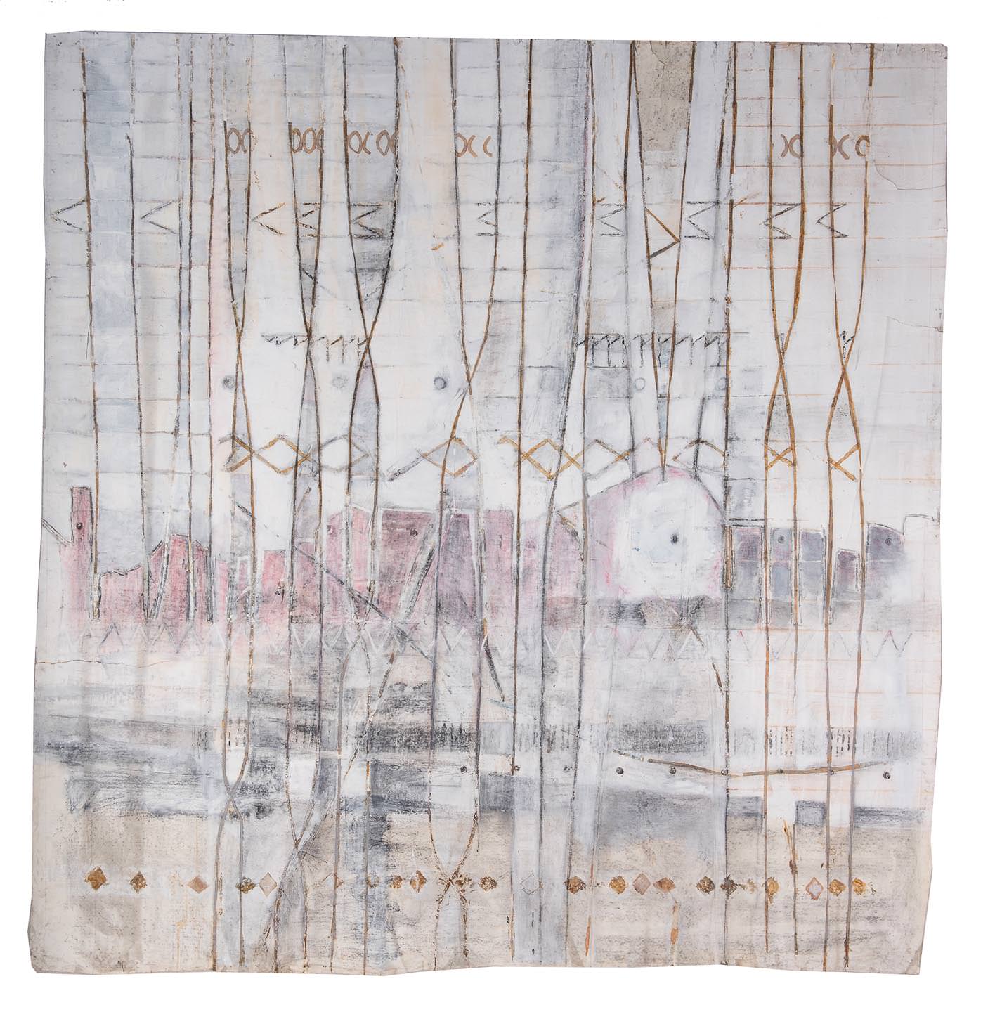 collage, paint, charcoal on paper